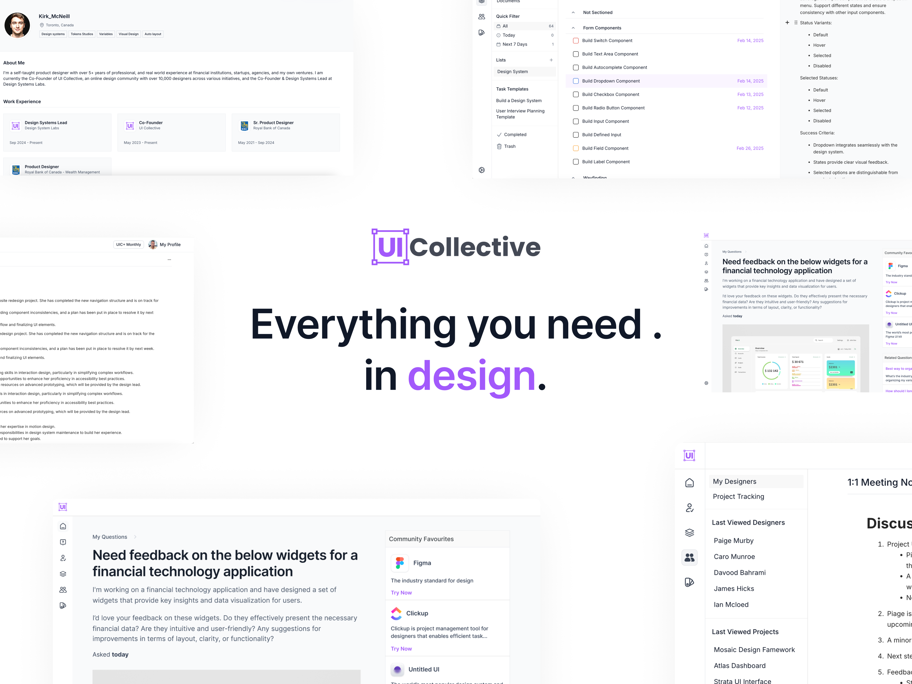 Unlock all UI Collective + has to offer now, and in the future.UI Collective+ is a simple set of tools to help designers stay organized. You can keep track of your projects, store screenshots and inspiration, manage your to-do list, and handle time tracking and invoices — all in one place. It’s built for everyday design work, whether you're freelancing or just want a better way to stay on top of things. Join us in our product beta.